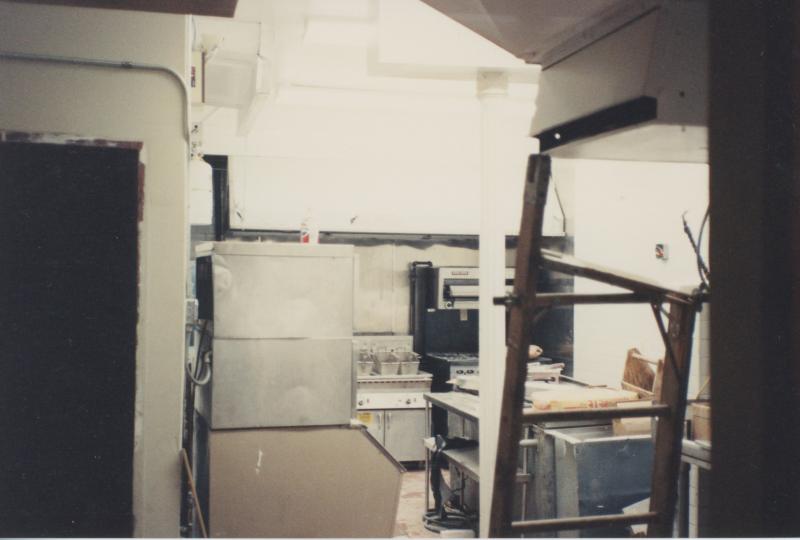 A full kitchen was installed at great expense to provide a fine dining experience for patrons. Sadly, the kitchen would be removed when it became apparent that customers weren't interested in dining at Stonewall.