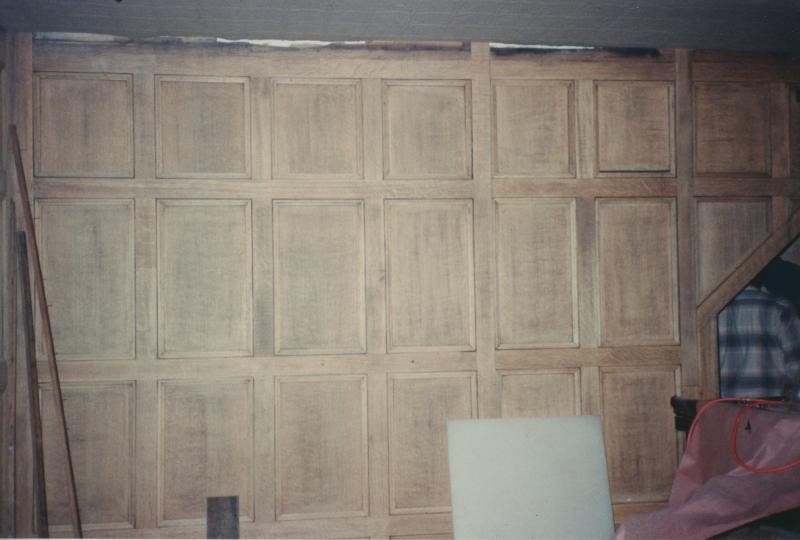 Elaborate wood paneling was installed to give the space an upscale, pub feel.