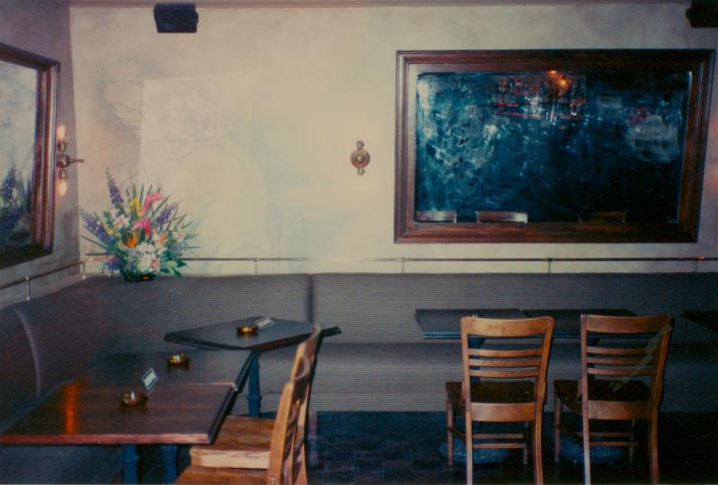 Local artists were brought in to create charcoal-style sketches on the walls, visible in this snapshot from the first days of the opening.